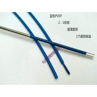 蓝色PVDF热缩管是由辐照交联特种聚合物(进口PVDF聚偏乙烯)制成的高性能阻燃热缩管。PVDF热缩管具有突出的耐磨性能、耐化学腐蚀性能和高温性能,可长期在高温下使用,耐磨、抗切割、耐大部分油及化学溶剂。广泛应用于汽车、航空、航天、电子电器配线、军工、传感器等受高温、工业燃料、溶剂和化学试剂侵蚀的焊接点、终端和连接线缆的绝缘保护和压力解除及被覆元件的区分识别保护和补强。